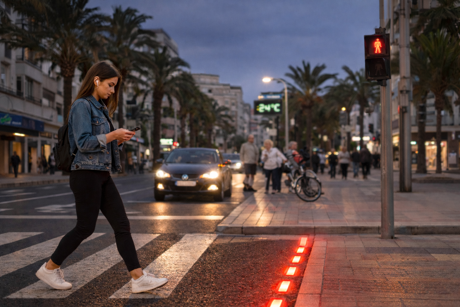 Испания обмисля нови мерки за пътна безопасност заради разсеяни пешеходци. В някои градове вече се тестват светофари и LED светлини, вградени директно в асфалта на пешеходните пътеки.