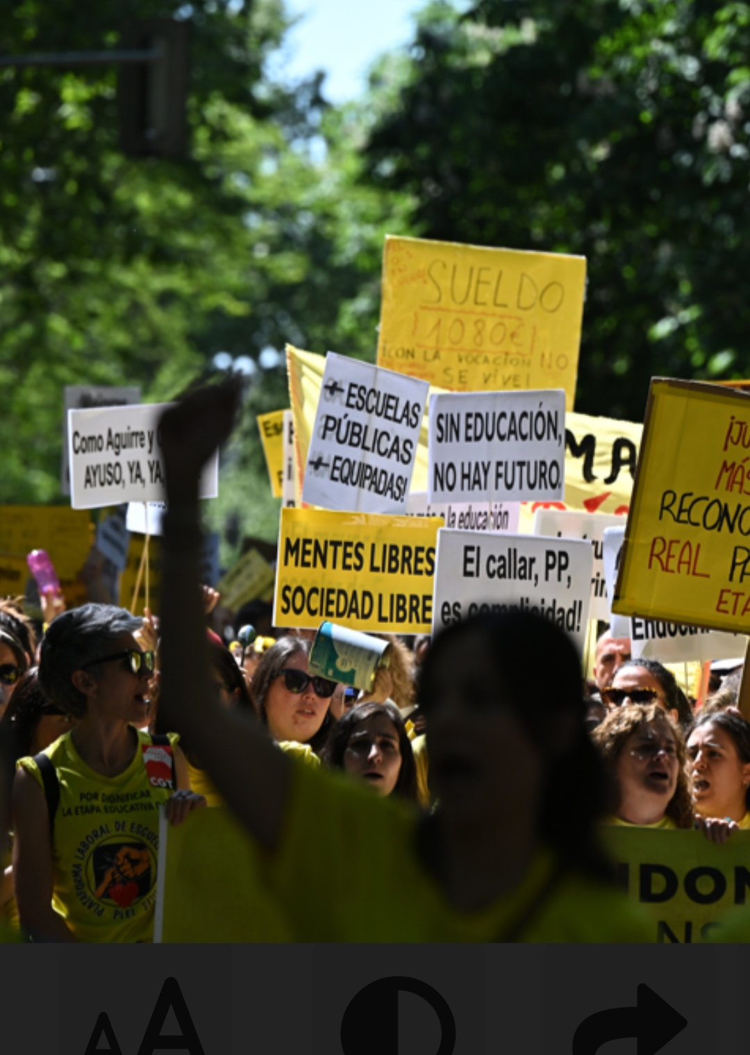 Стотици учители, родители и студенти излязоха на протест в Мадрид в подкрепа на държавното образование. Демонстрацията премина под лозунга „Университетът не се продава, той се защитава“.