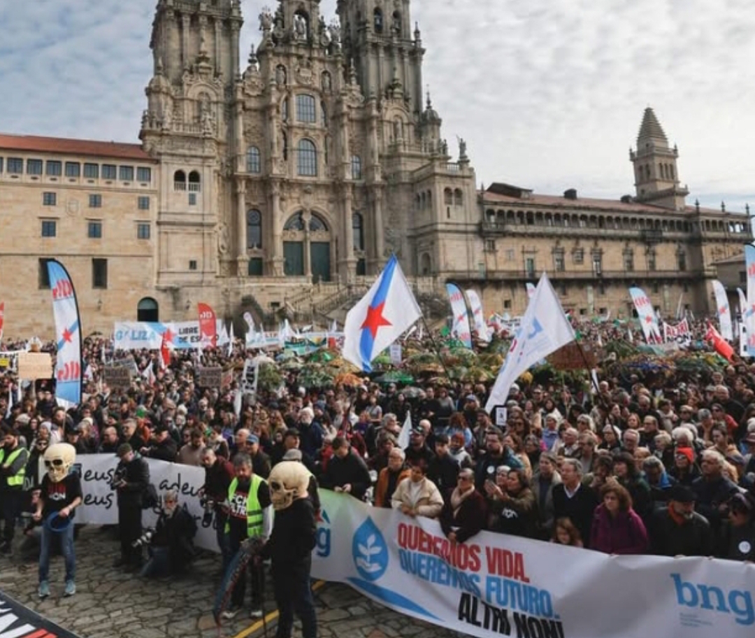 Хиляди жители на Сантяго де Компостела излязоха на протест срещу проекта за изграждане на мащабен целулозен завод на компанията Altri в северозападната испанска област Галисия, предаде „Ла Секста “.